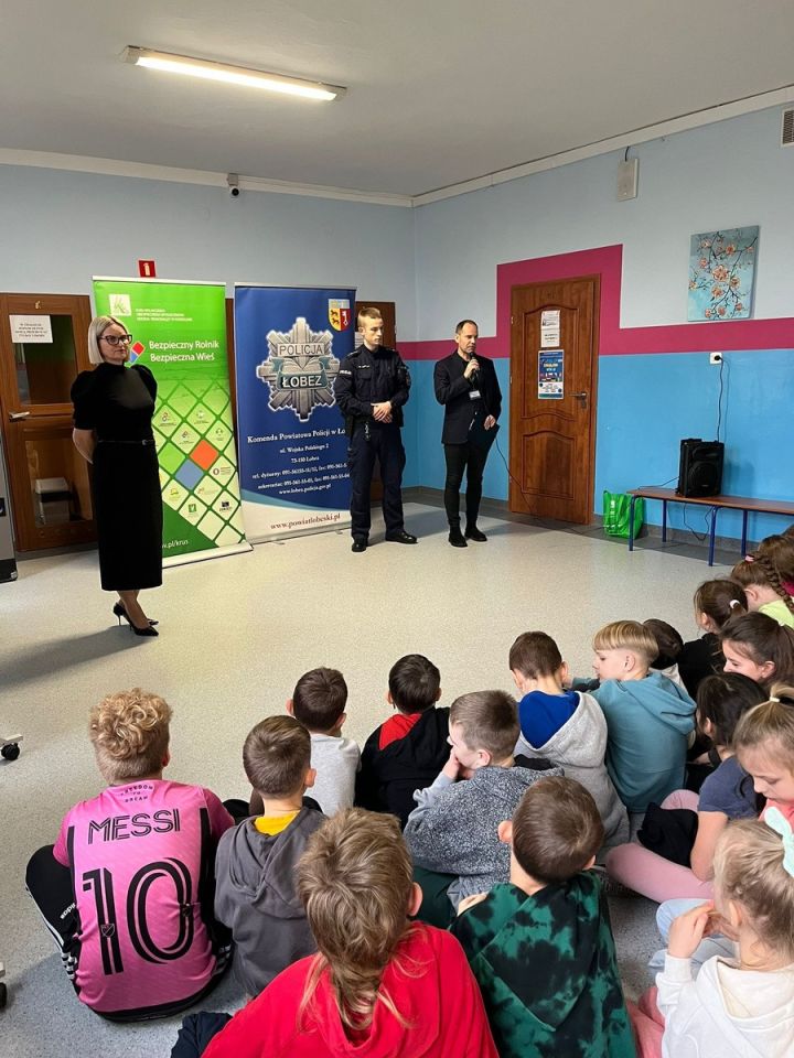 W ubiegły czwartek funkcjonariusze Komendy Powiatowej Policji w Łobzie wraz z przedstawicielami Kasy Rolniczego Ubezpieczenia Społecznego Oddział Regionalny w Koszalinie Placówka Terenowa w Gryficach przeprowadzili spotkania profilaktyczne w Szkole Podstawowej nr 1 w Łobzie oraz w Szkole Podstawowej w Bełcznie. Zajęcia miały na celu przypomnienie zasad bezpieczeństwa w ruchu drogowym z naciskiem na widoczność pieszych po zmroku.